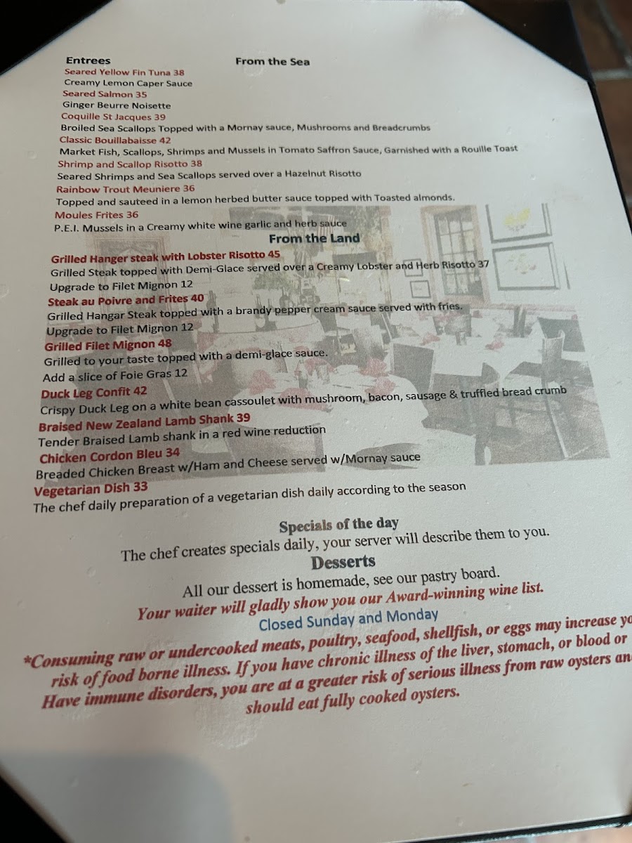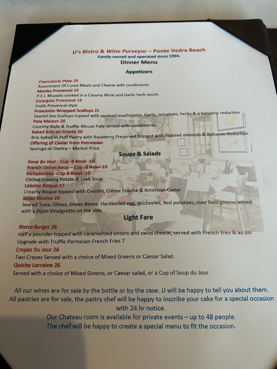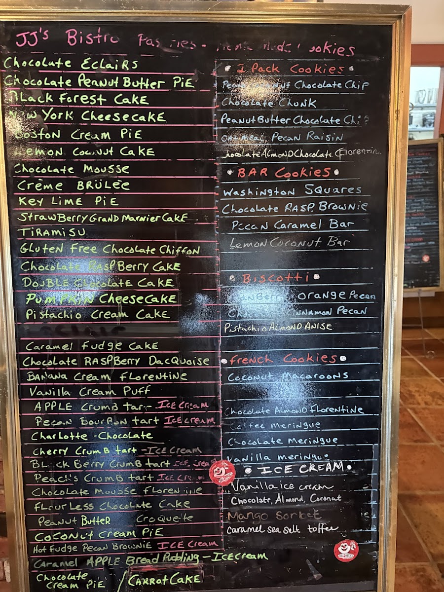At Jj's Liberty Bistro, the menu reads like a confident snapshot of a bistro that balances comfort with polish, offering enough range to satisfy both classic cravings and indulgent moods. The selection of Wine sets an easygoing yet refined tone, pairing naturally with starters like Pate, which feels rich and traditional without being heavy. Moving into heartier territory, the Hanger Steak stands out as a menu anchor, delivering depth and satisfaction, while the Hamburger and Fries with Dipping Sauce keeps things approachable, executed with a sense of care that elevates a familiar favorite. Lighter options such as the Chicken Salad Sandwich provide balance, making the menu feel welcoming for lunch or a relaxed dinner. Seafood and French-inspired dishes give the lineup personality: Oysters Rockefeller bring classic indulgence, Mussel dishes add coastal freshness, and Chicken French Onion Crepes reflect a thoughtful blend of comfort and technique. Sandwiches like Croque Monsieur reinforce the bistro identity, while specials such as the Short Rib Special and Duck Leg Something suggest a kitchen willing to lean into slow-cooked, flavorful plates. Freshness shows through in Tomato Mozzarella and Basil, offering a clean contrast to richer mains. Desserts close the experience on a high note, with the Strawberry Mounier Cake Slice, Peanut Butter Pie, and Chocolate Mousse Florentine providing a mix of light sweetness and deep chocolatey satisfaction. Taken together, the menu feels cohesive and thoughtfully curated, presenting a well-rounded dining experience that reflects both classic bistro roots and crowd-pleasing versatility.